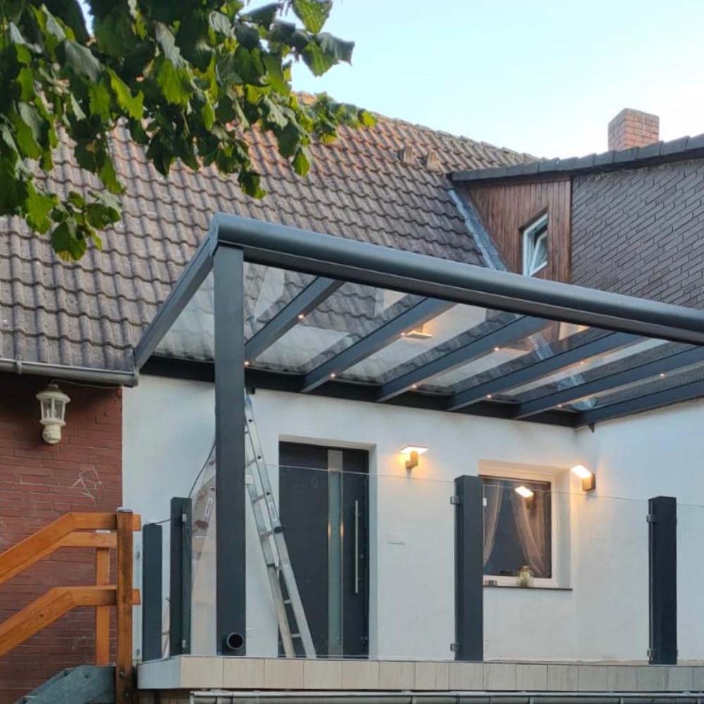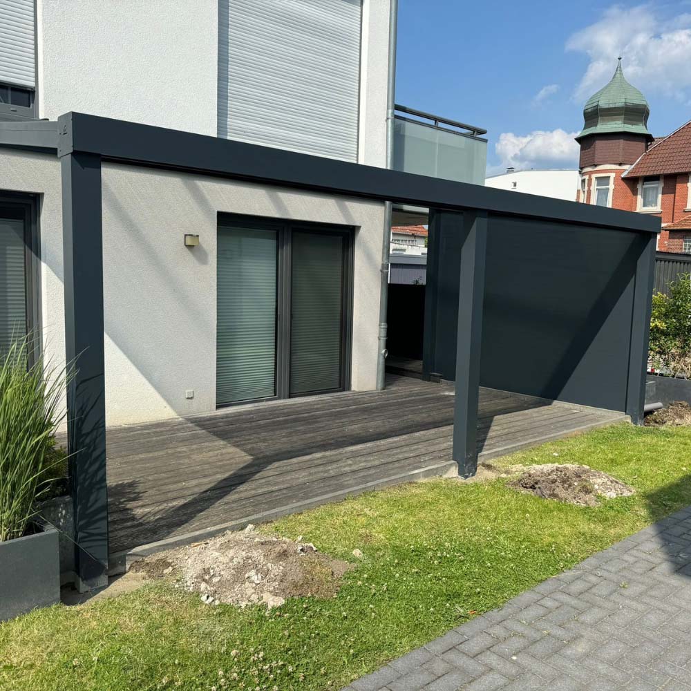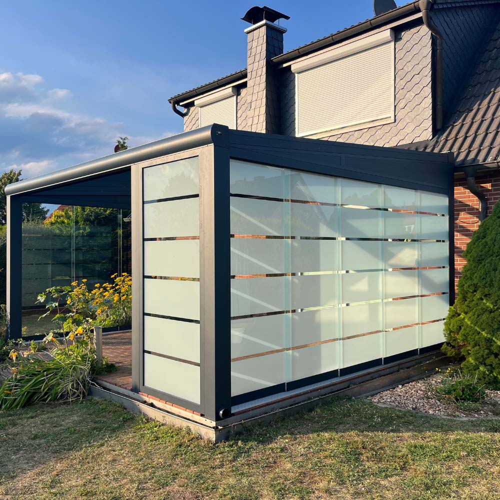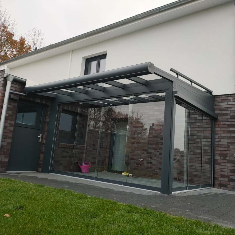 Die hochwertigen Aluminiumprofile sind korrosionsbeständig, stabil und äußerst pflegeleicht. In Kombination mit VSG-Glas oder Polycarbonat entsteht eine langlebige Konstruktion, die Sonne, Regen und Wind standhält. Durch optionale Ergänzungen wie Markisen, Schiebeelemente oder Solardächer verwandeln Sie Ihre Terrasse in einen Ort zum Genießen – ganz nach Ihren Bedürfnissen.