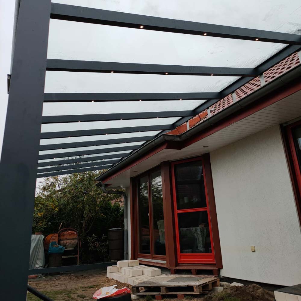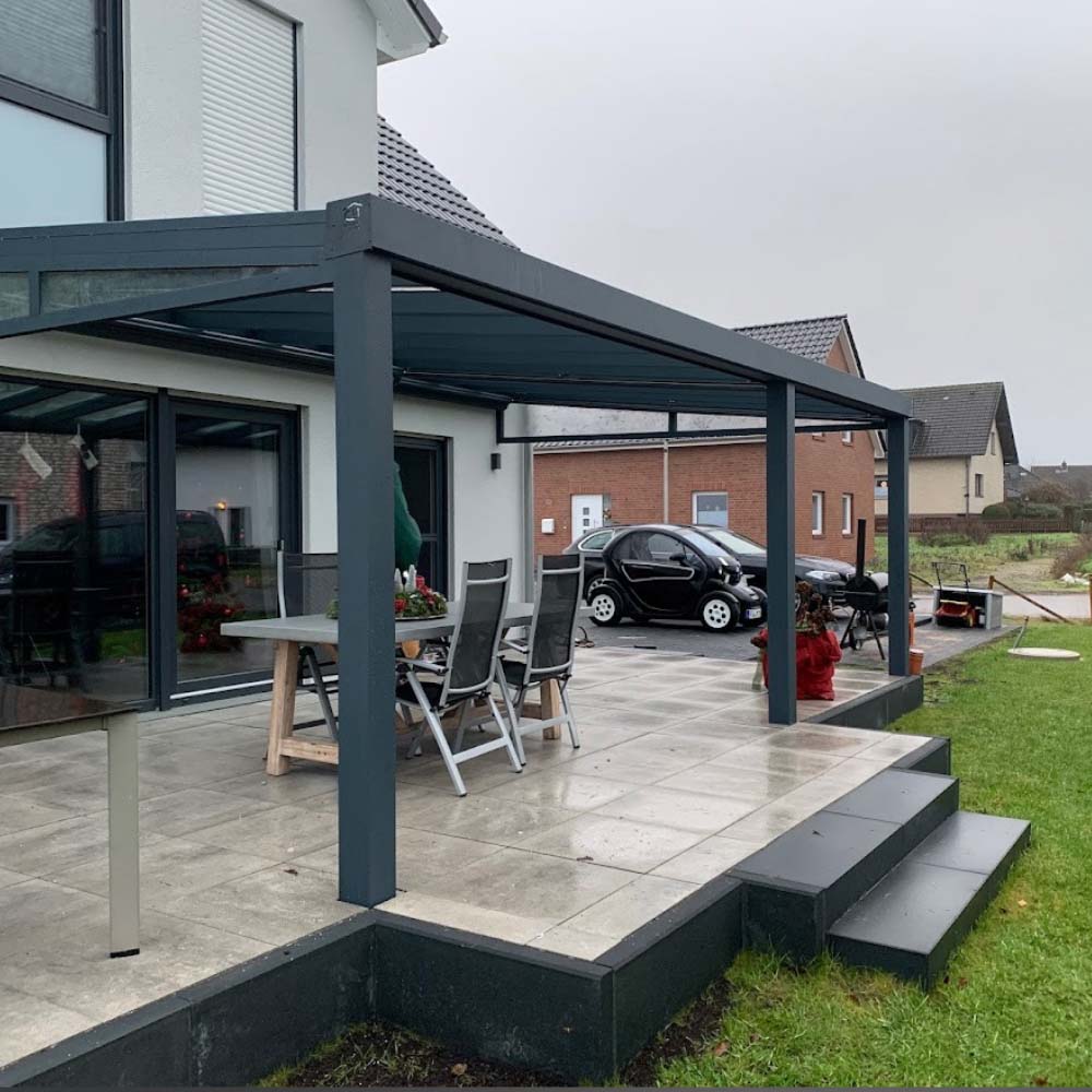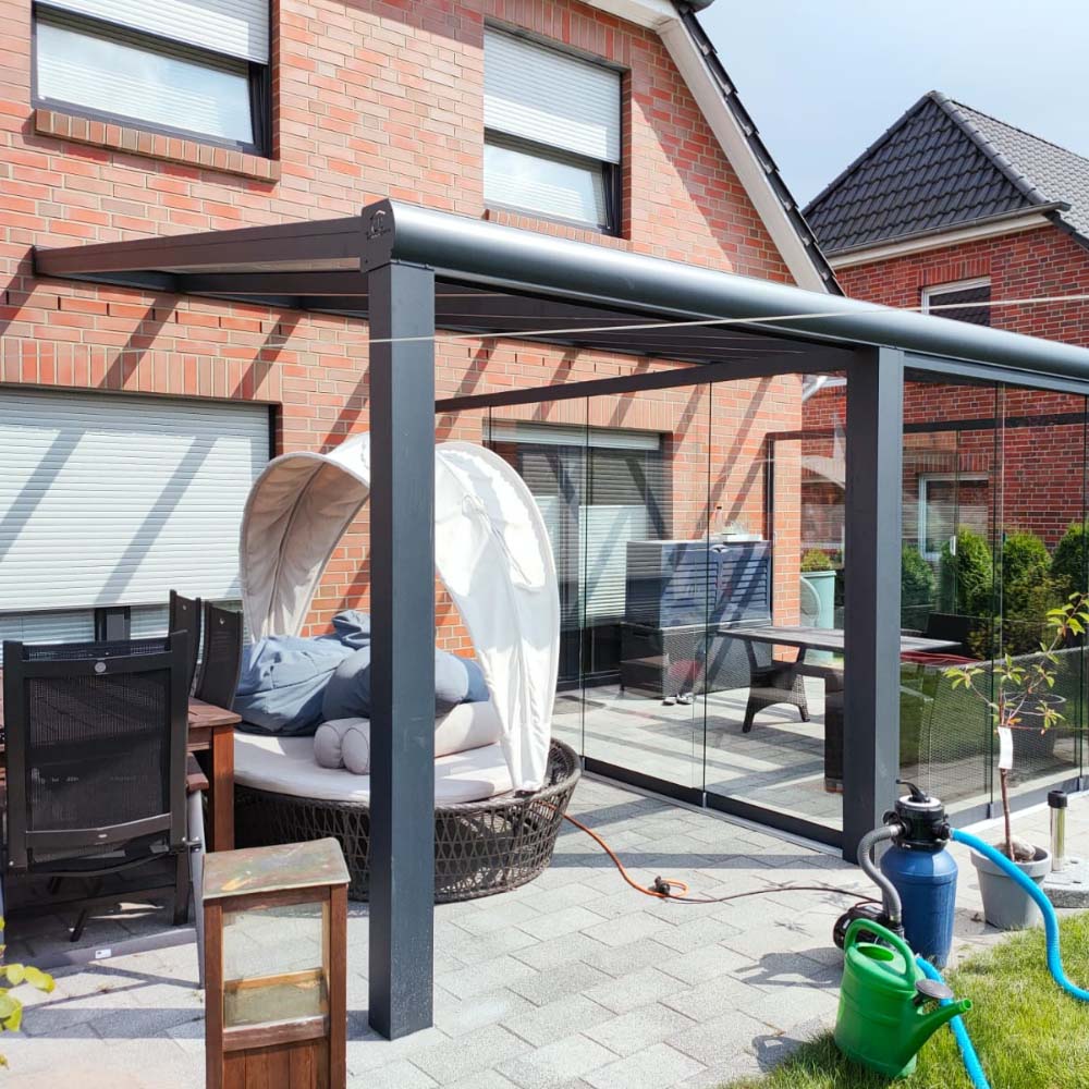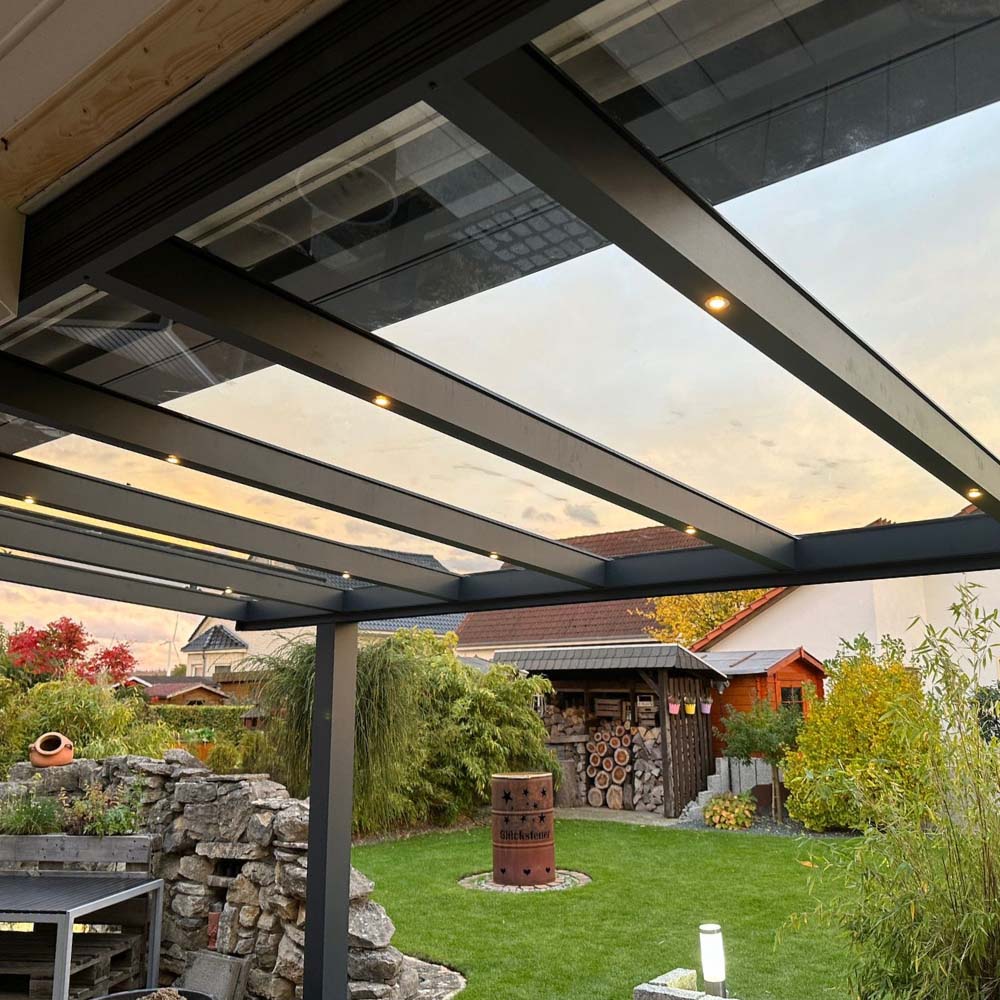 Die hochwertigen Aluminiumprofile sind korrosionsbeständig, stabil und äußerst pflegeleicht. In Kombination mit VSG-Glas oder Polycarbonat entsteht eine langlebige Konstruktion, die Sonne, Regen und Wind standhält. Durch optionale Ergänzungen wie Markisen, Schiebeelemente oder Solardächer verwandeln Sie Ihre Terrasse in einen Ort zum Genießen – ganz nach Ihren Bedürfnissen.